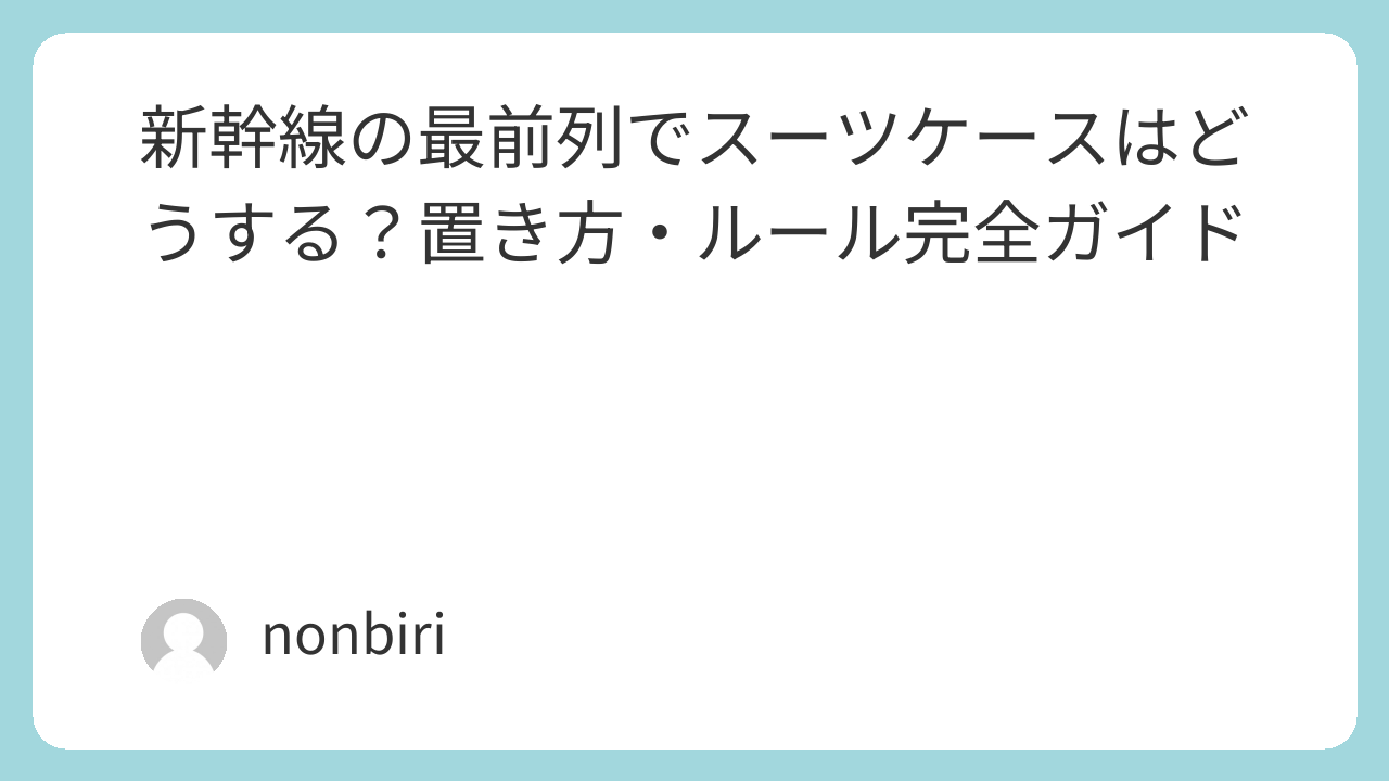 新幹線に乗るとき、「最前列の座席は快適そうだけどスーツケースはどうすればいいの?」と不安に思ったことはありませんか。前に人がいない分、足元の広さや開放感は魅力的ですが、荷物の置き場所については迷いやすいポイントです。特に初めて利用する方や大きなスーツケースを持つ方にとっては、事前に知っておきたい情報のひとつでしょう。