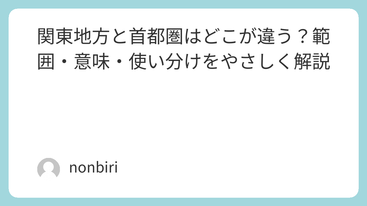 この記事では、国が地域を整理するための区分としての関東地方と、生活圏として広がる首都圏の違いを、やさしい言葉でわかりやすく整理していきます。