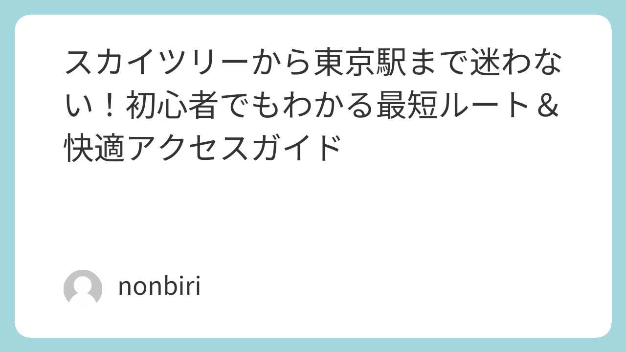 この記事では、スカイツリーから東京駅までの最短ルートと所要時間、さらに移動をラクにする工夫や便利なサービスを、初心者の方にもわかりやすく紹介します。