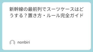 お出かけ 新幹線の最前列でスーツケースはどうする?置き方・ルール完全ガイド 新幹線に乗るとき、「最前列の座席は快適そうだけどスーツケースはどうすればいいの?」と不安に思ったことはありませんか。前に人がいない分、足元の広さや開放感は魅力的ですが、荷物の置き場所については迷いやすいポイントです。特に初めて利用する方や大... お出かけ