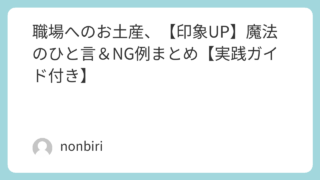 生活 職場へのお土産、【印象UP】魔法のひと言&NG例まとめ【実践ガイド付き】 職場にお土産を持っていくとき、「どんなものを選べば喜ばれるのかな?」「ひと言添えるなら、どんな言葉がいいんだろう?」と悩んだ経験はありませんか。お土産は単なる差し入れではなく、日々の人間関係をより明るく、温かくしてくれる大切なきっかけになり... 生活