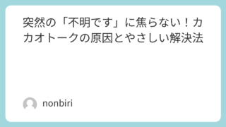 生活 突然の「不明です」に焦らない!カカオトークの原因とやさしい解決法 カカオトークを使っていて、ある日突然「不明です」という表示が出てきたら…少しドキッとしてしまいますよね。「誰かにブロックされたのかな?」「アカウントがおかしくなったのかも…」と、思わず不安になる方も多いのではないでしょうか。実はこの「不明で... 生活