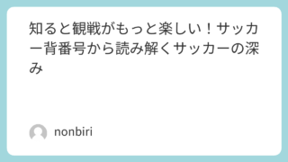 生活 知ると観戦がもっと楽しい!サッカー背番号から読み解くサッカーの深み サッカーの試合を観ていると、背番号に自然と目がいくことはありませんか?ただの数字に見えて、実はそのひとつひとつに選手の思いや歴史、そしてチームの伝統が込められています。たとえば「1番」は守護神の象徴、「10番」はチームの中心、「9番」は点取... 生活